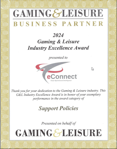 We are thrilled to announce that eConnect has been honored with the 2024 Industry Excellence Award for Customer Support by Gaming & Leisure Magazine! This prestigious recognition highlights the dedication and commitment of our support team to providing world-class service to our customers.