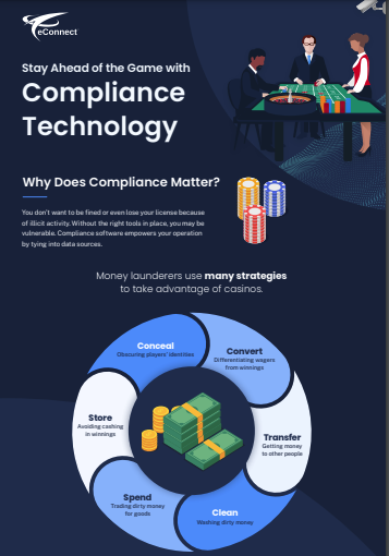 eConnect is a leading provider of casino surveillance software, with over 12 years of experience in compliance and point-of-sale fraud. Our software is designed to connect to your existing surveillance systems, providing analytics and alerts around surveillance activities such as money laundering.